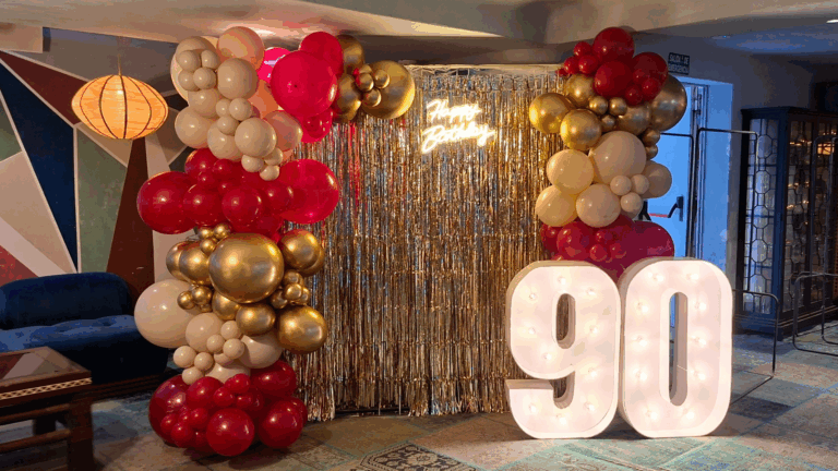 Decoraciones elegantes y actuales para cumpleaños de adultos en Madrid: globos, photocalls y ambientes únicos.